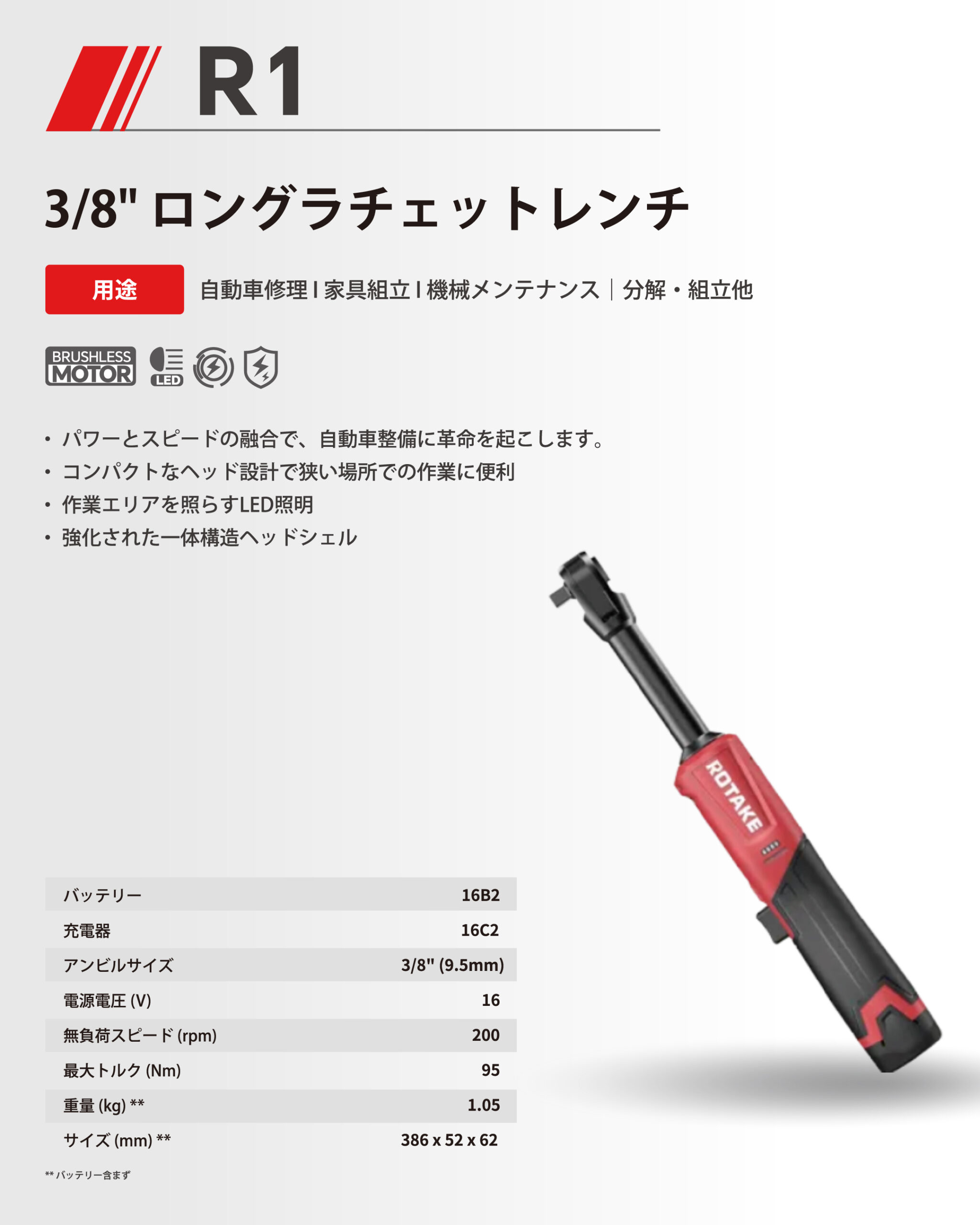 • ・パワーとスピードを両立し、自動車整備作業を効率化