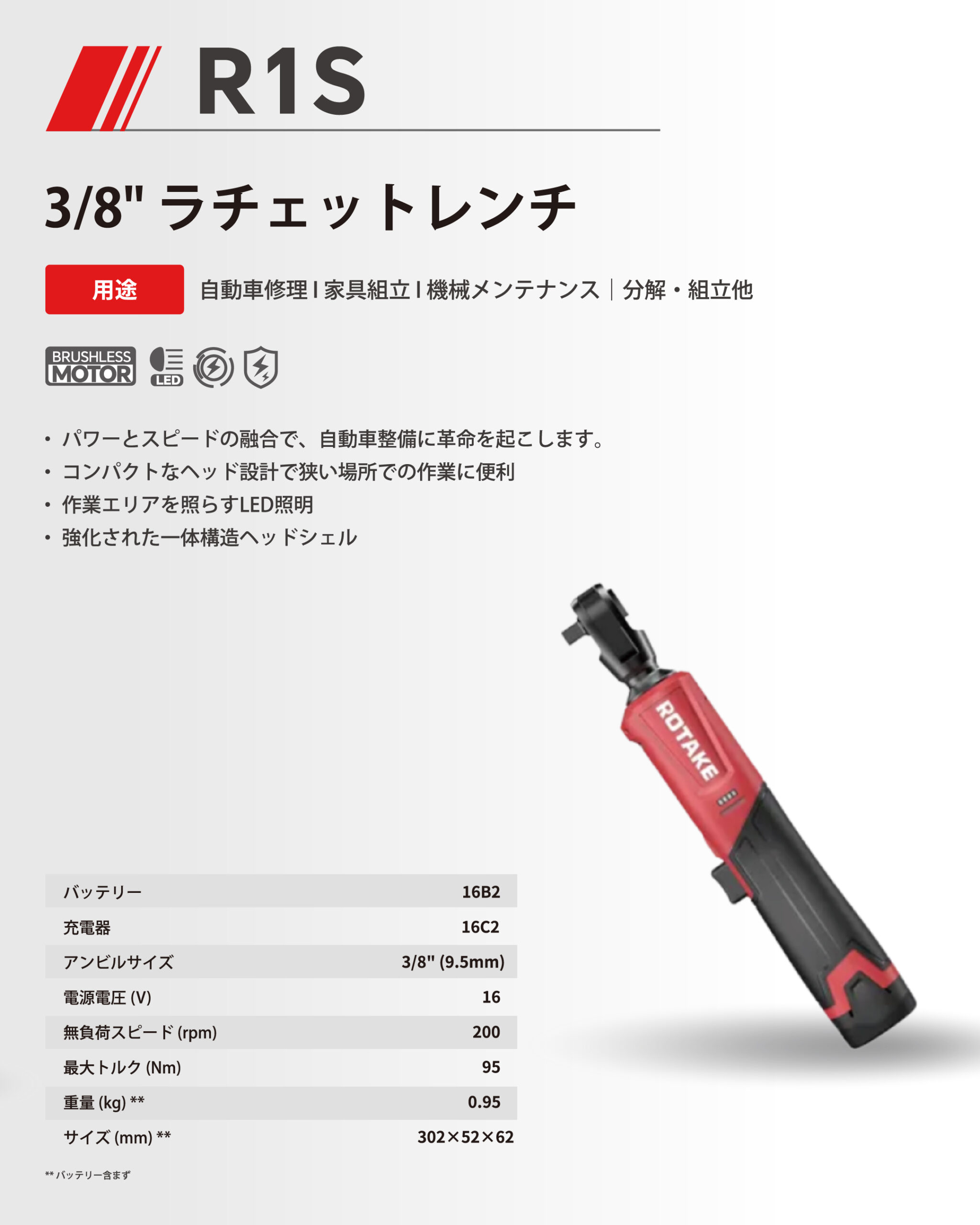 - ・パワーとスピードを両立し、自動車整備作業を効率化